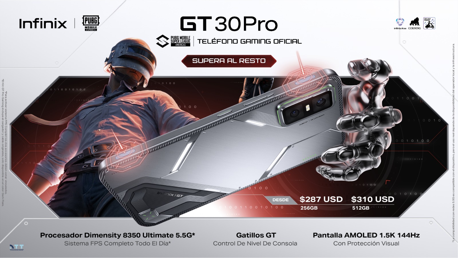 Bolivia, junio 2025.- INFINIX, en colaboración con PUBG Mobile, lanza en Bolivia el GT 30 Pro, un smartphone que redefine el gaming móvil al combinar diseño futurista, alto rendimiento y control total. Equipado con el potente procesador MediaTek Dimensity 8350 Ultimate 5.5G, una pantalla AMOLED 1.5K de 144 Hz con protección ocular, gatillos GT de respuesta ultrarrápida y certificación para jugar a 120 FPS, este dispositivo está diseñado para brindar una experiencia fluida, estable y envolvente. Como teléfono oficial de la PUBG Mobile Super League (PMSL), el GT 30 Pro es el único en su categoría capaz de correr Call of Duty Mobile a 120 FPS, consolidando así su posición como el aliado perfecto para los gamers bolivianos. Esta propuesta nace de una profunda colaboración con desarrolladores de videojuegos y fabricantes de chips, integrando un ecosistema de accesorios y tecnologías optimizadas para conquistar cada partida con estilo y precisión.